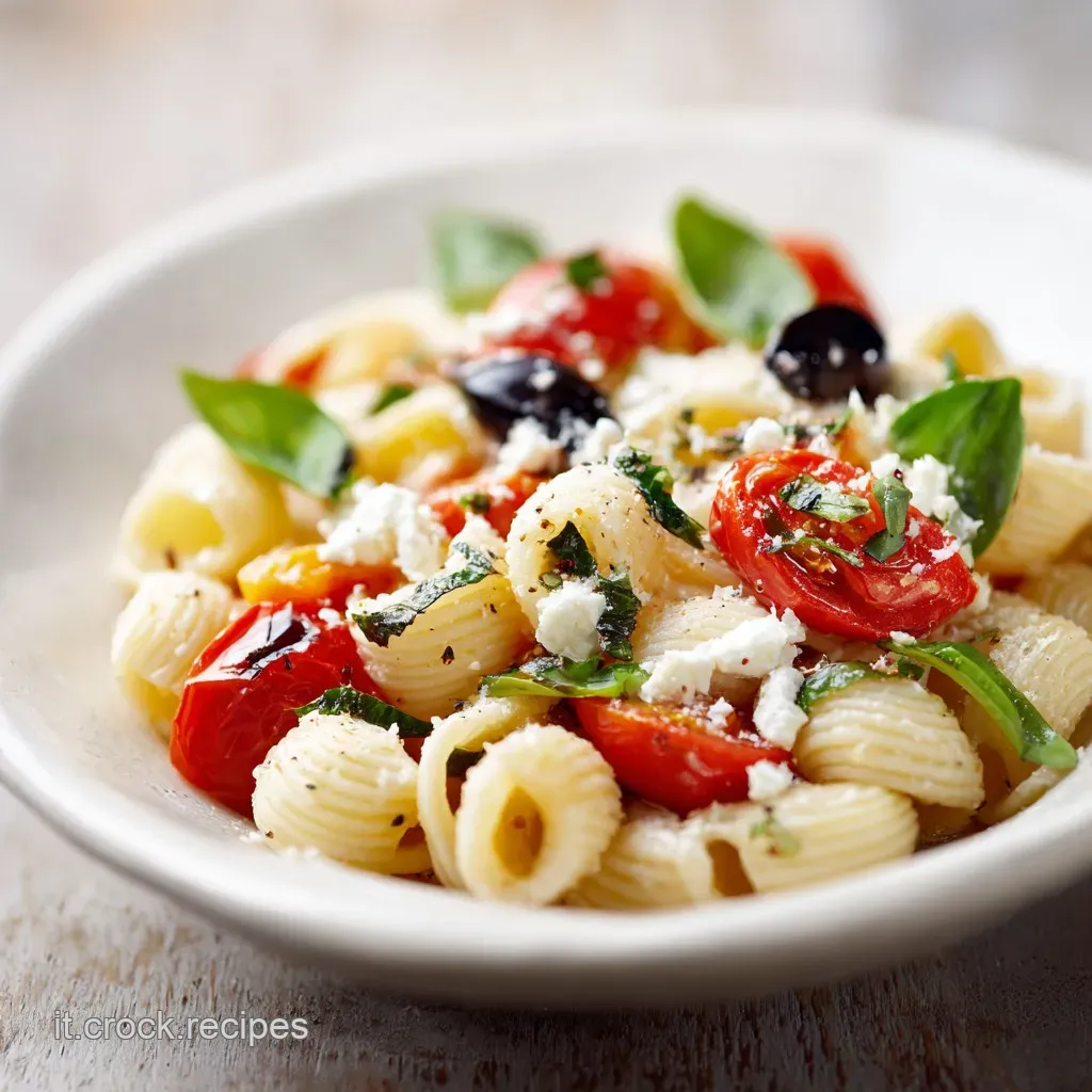 In termini di abbinamenti, questa versione mediterranea chiama un vino bianco fresco con una buona acidità, come un Vermentino o un Sauvignon Blanc. Se preferisci qualcosa di analcolico, un'acqua aromatizzata con fette di cetriolo e menta pulirà perfettamente il palato dalla sapidità della feta. Se vuoi completare il menu, questa pasta è l'accompagnamento ideale per dei Rusticini Pasta Sfoglia ricetta serviti come antipasto croccante.